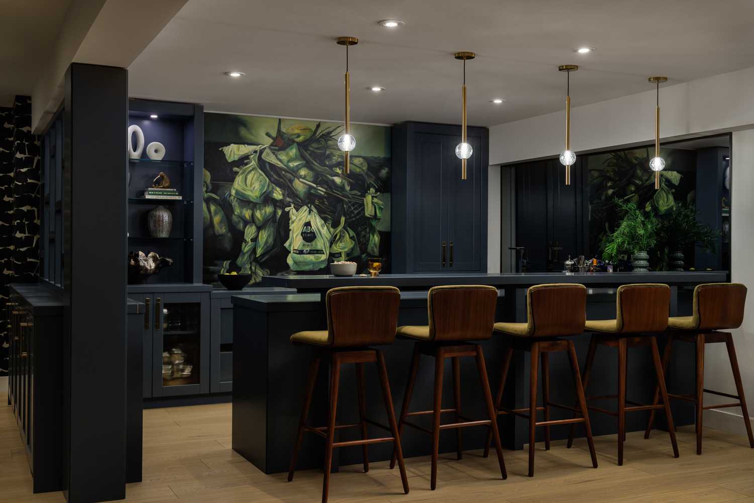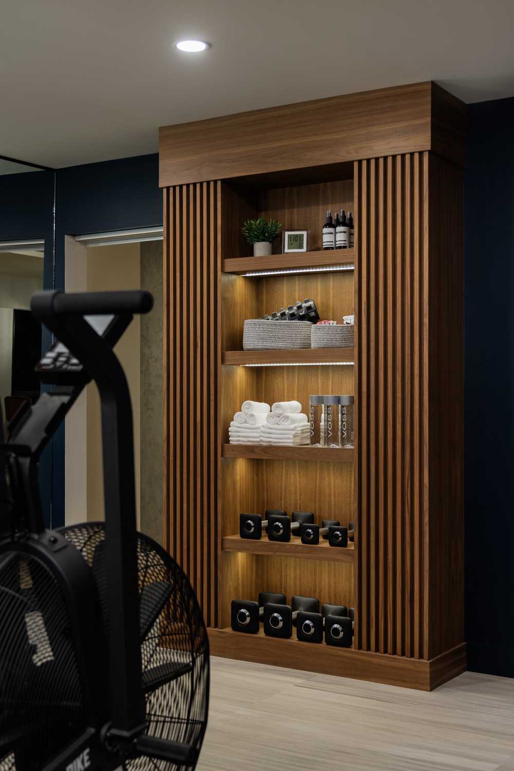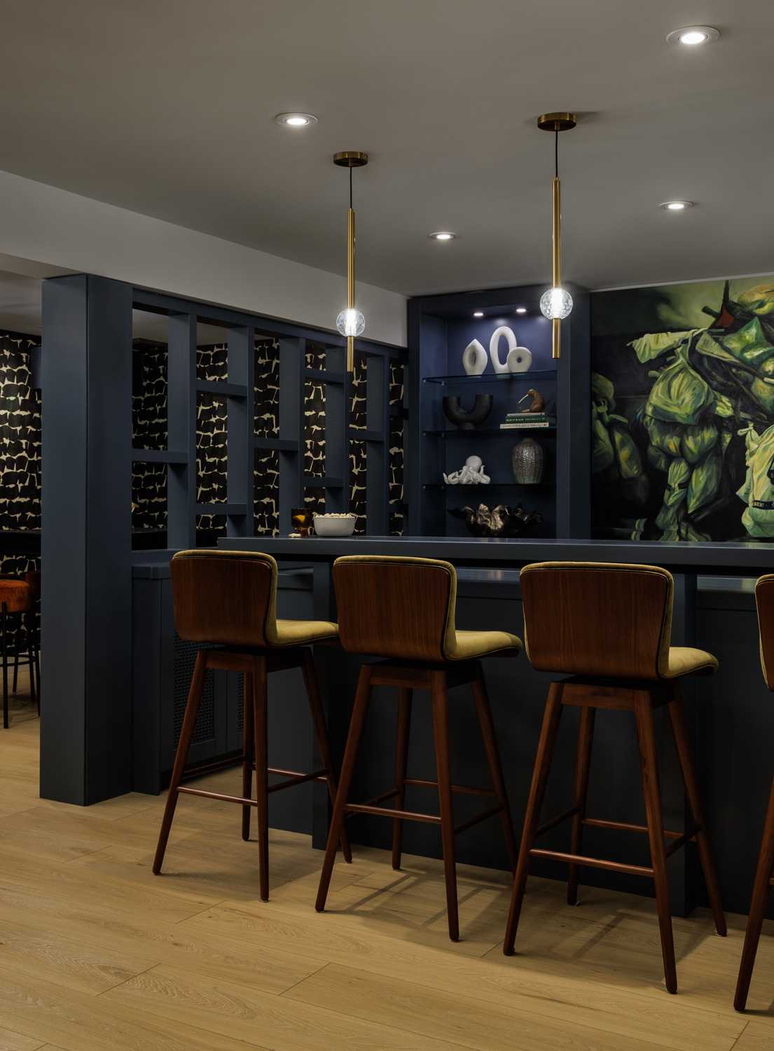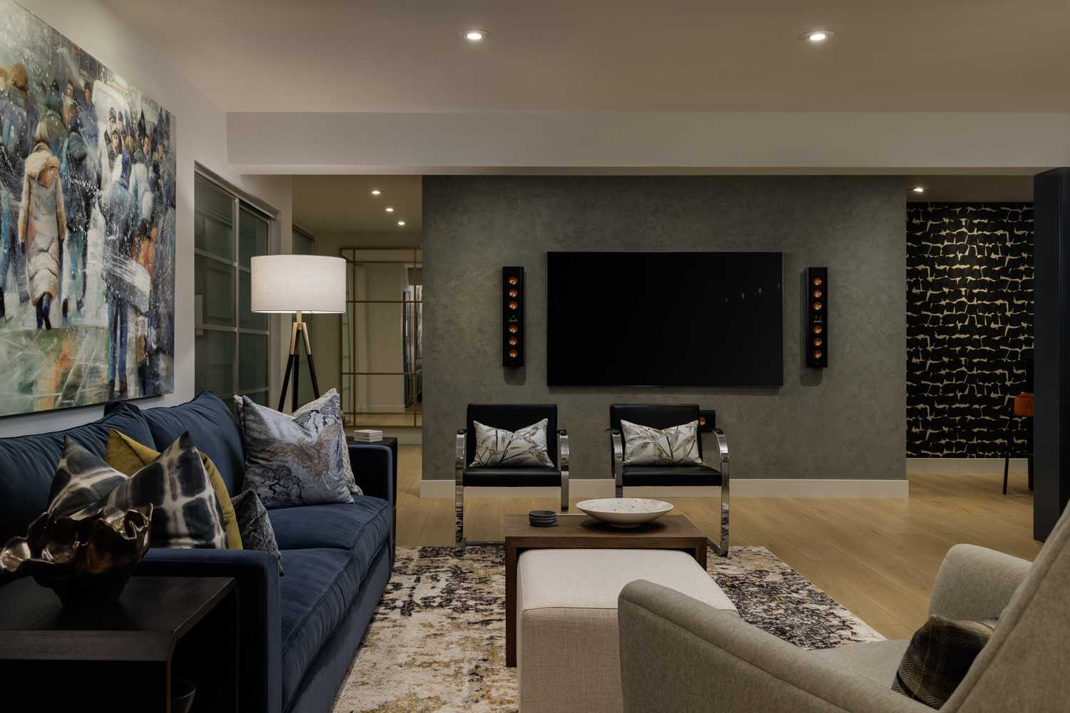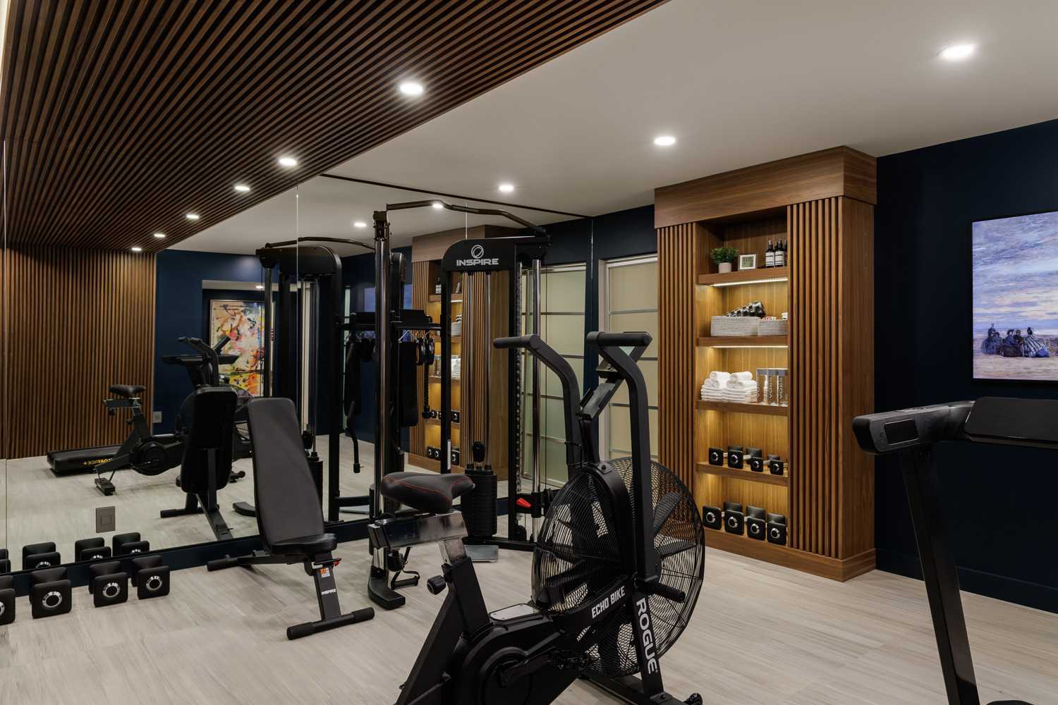From an inspiring custom gym to a speakeasy-influenced basement, this renovation is all about balance: durability meets elegance, mood meets functionality. Backlit walnut details set the stage for focused workouts, while layered lighting and textured finishes create a warm, atmospheric living space. With an upgraded bar, a striking bathroom, bold card room, and refreshed multi-purpose rooms, this basement was crafted to elevate everyday living.